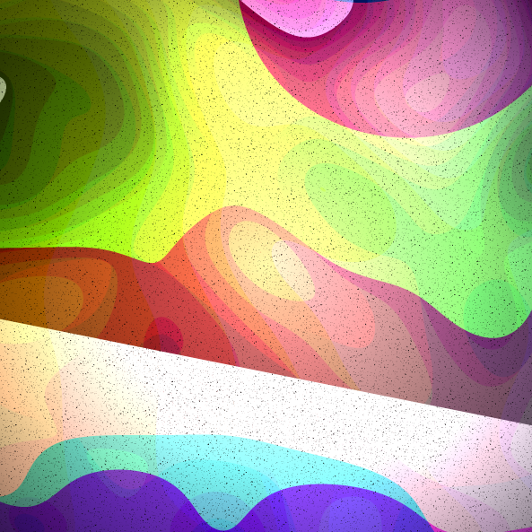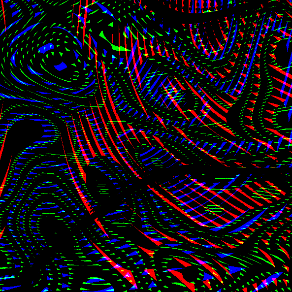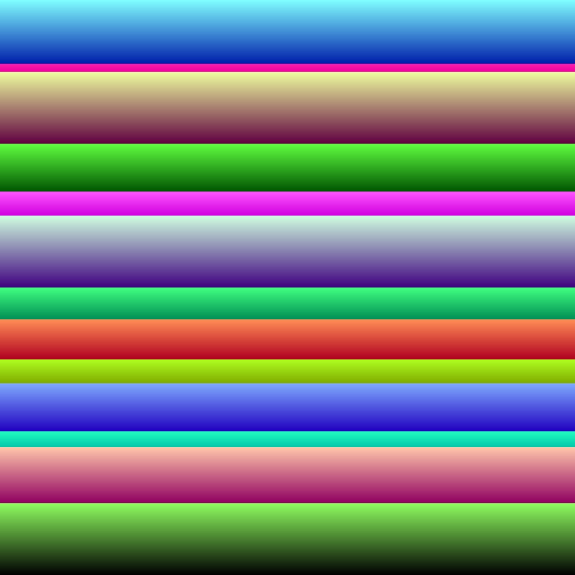 At this point, these ramps can be scaled differently on each color channel (read they can have a different frequency on each color channel), this allows me to create color patterns using a single ramp, below you can see a vertical locked ramp with different colors in the first image. ramp(st.y, vec3(4.5, 8., 3.))
