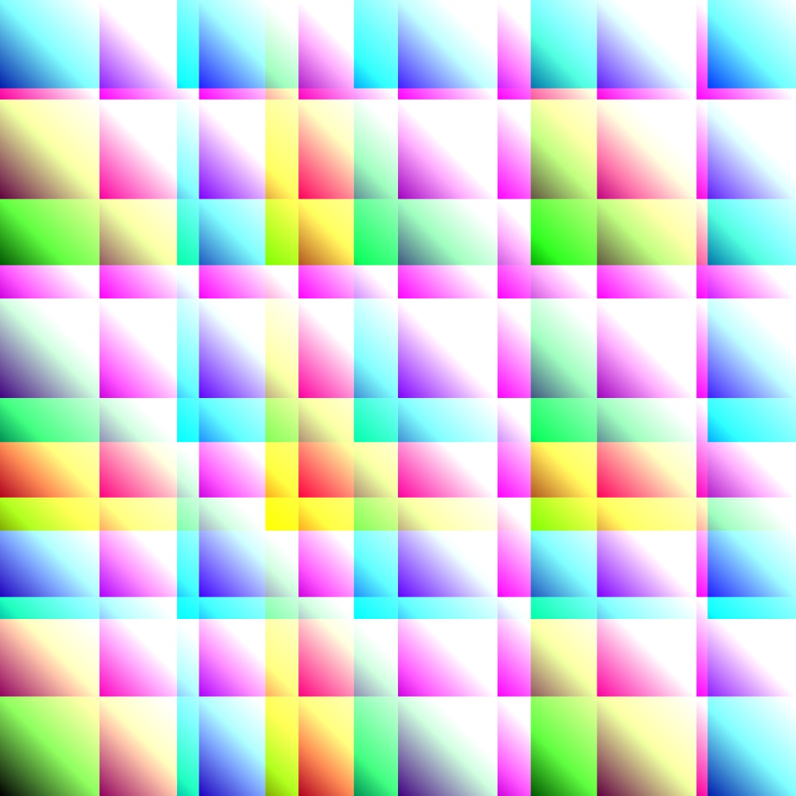 The second image below shows two ramps (horizontal and vertical) added together. ramp(st.y, vec3(4.5, 8., 3.)) + ramp(st.x, vec3(4.5, 8., 3.))